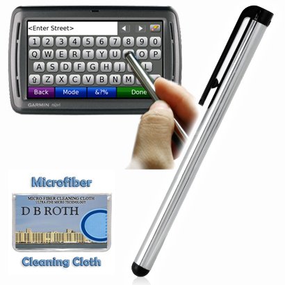 Buy Touch Pen Stylus for your GPS TomTom One, TomTom XL, TomTom GO - Silver metal body with soft Rubber tip. Includes DBROTH Microfiber Cleaning Cloth Now